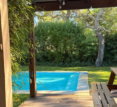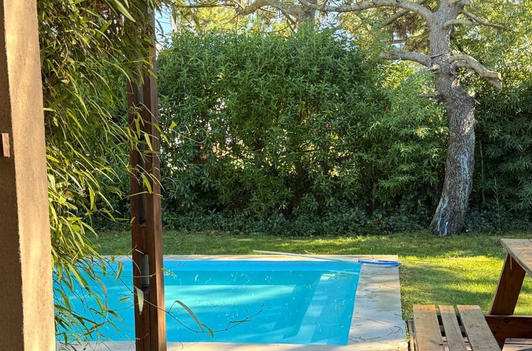 Casa cómoda con dos dormitorios, piscina y parrilla, a solo 300 metros de la playa en Mar de Cobo.